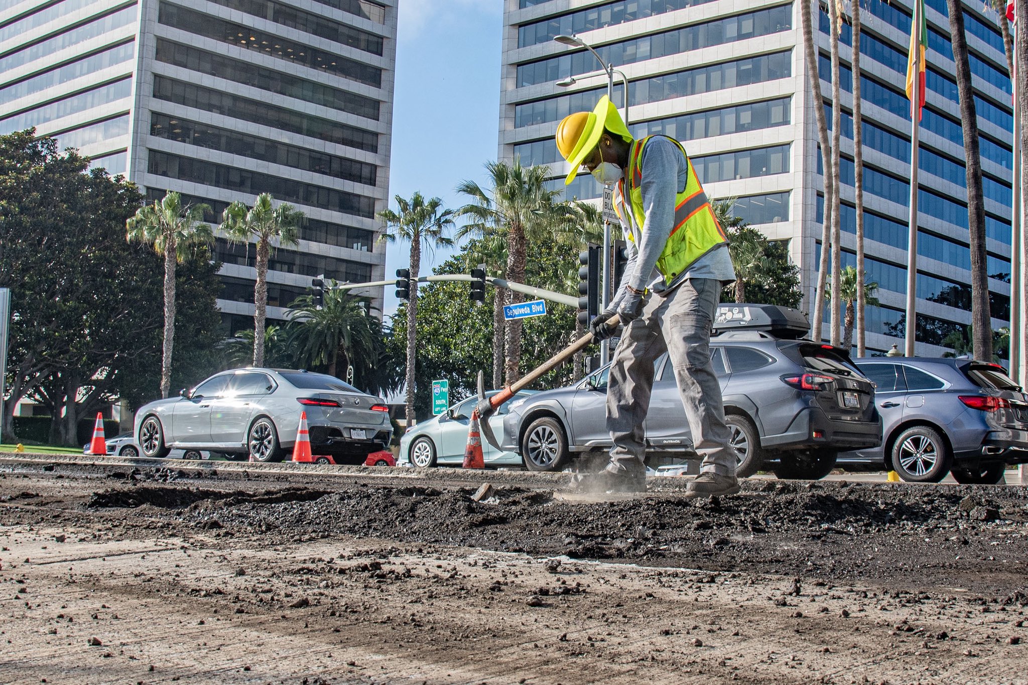 The week before featured StreetsLA preparing the route, including making repairs (here, on Sepulveda Boulevard).