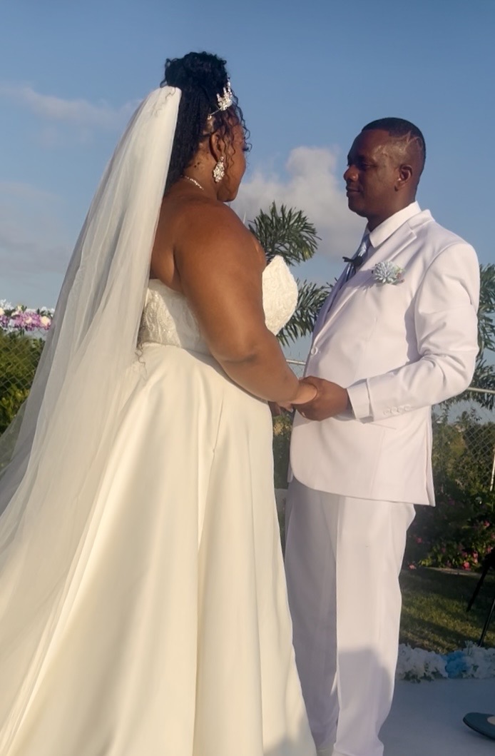 “Barbadian weddings are as much about community as they are about the couple, and this one unfolded with that warm, unmistakable Bajan spirit. Aunties dabbed their eyes with embroidered handkerchiefs. Old friends fanned themselves with woven palm fans. Laughter rippled through the garden when the officiant spoke of fate and timing and the improbable magic of meeting the right person at the right time. Nicky and Marc will be spending their honeymoon on a cruise to Aruba.